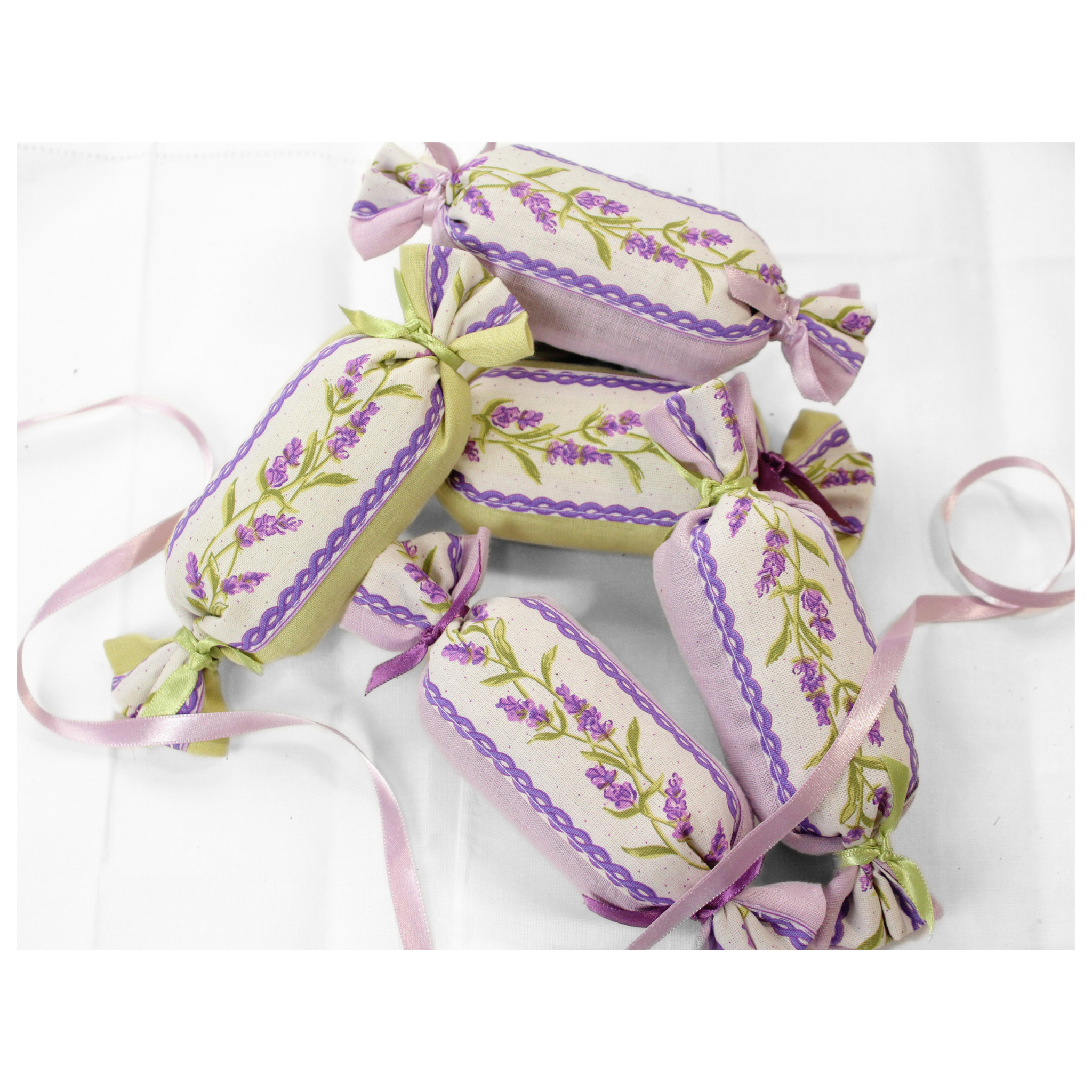 Filled with aromatic French lavender, these adorable candy shaped sachets are perfect for freshening drawers, closets, luggage, or bedside tables. Finished with delicate ribbon ties and offered in a variety of playful fabric designs from florals to classic embroidered styles, each sachet is a beautiful little gift of calm.
